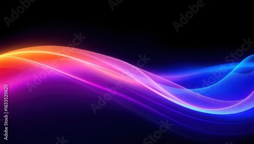 © Arip, Fototapeta premium Bright Orange Pink Blue Abstract Light Waves on Black Background