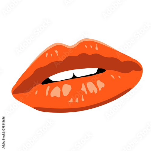 © Anitata, Obraz premium Bright orange sensual lips on wight background