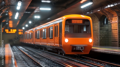 Naklejka premium Bright Orange Subway Train Station With Modern Design
