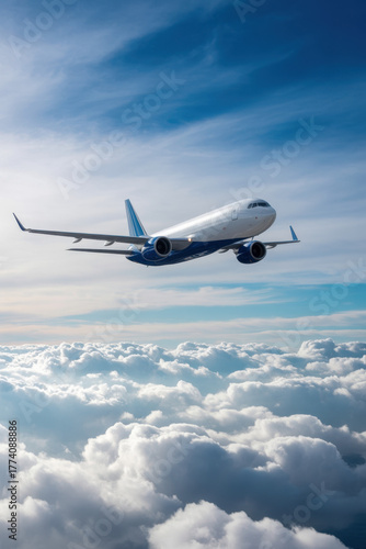 © Macrostock, Fototapeta premium Bright passenger airplane plane flying in sky