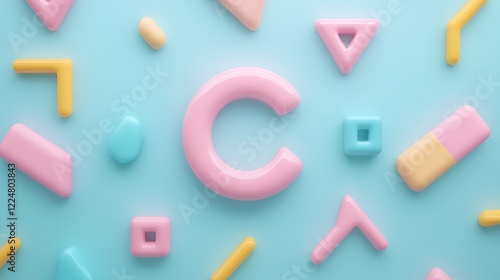 Naklejka premium Bright Pastel Shapes and Cutouts on Light Blue Background for Creative...