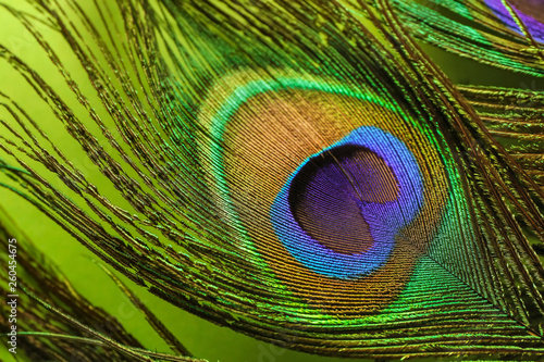 © Pixel-Shot, Obraz premium Bright peacock feather, closeup