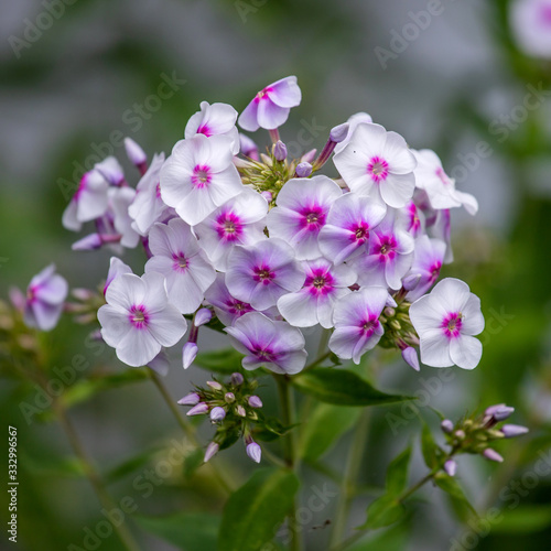 © Liubov Kartashova, Fototapeta premium bright phlox flowers on green background