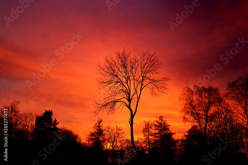 © tanor27, Fototapeta premium Bright photo of red sunset in the spring in the park