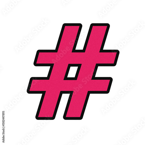 Obraz premium Bright pink hashtag symbol with black outline and subtle shadow isolated on transparent background