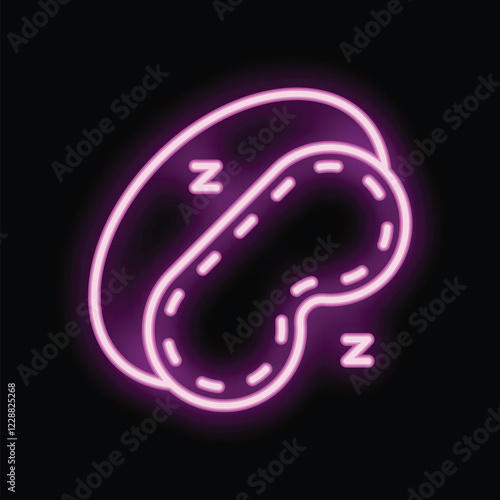 Obraz premium Bright pink neon sign shaped like a sleeping mask glowing on a black background
