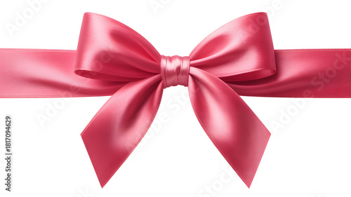 © Mushahid, Fototapeta premium Bright pink satin bow with horizontal ribbon, isolated on white background for design elements