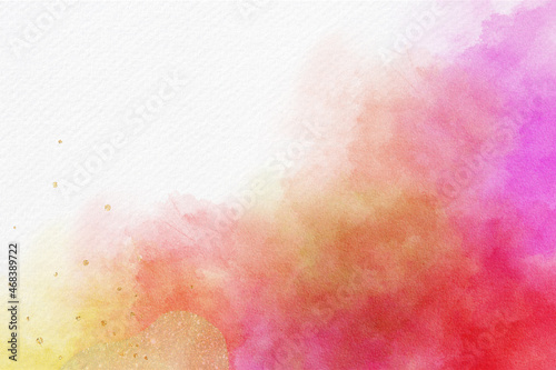 © jenteva, Fototapeta premium Bright pink watercolor abstract background with gold elements