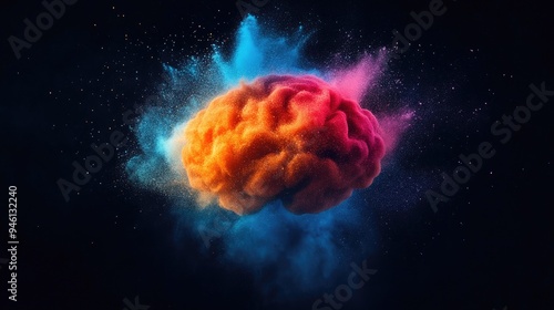 © Andrii , Fototapeta premium Bright Powder Burst Emanating from Digital Brain Illustration