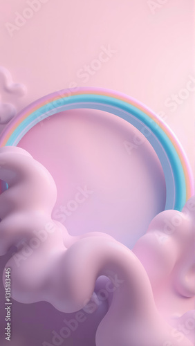 © ekaterinabyuksel, Fototapeta premium Bright rainbow and pink clouds