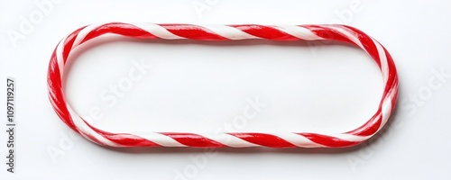 Fototapeta premium Bright red and white striped candy cane placed on a clean white background for festive themes and holiday celebrations