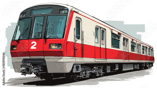 Fototapeta premium Bright Red and White Train with Number 2 on Front, Vector Illustration