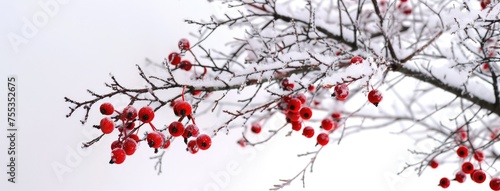 © evening_tao, Fototapeta premium Bright Red Berries Frosted on a Wintry Day