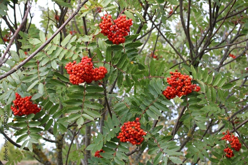 © Anatolijs, Obraz premium Bright red berries of mountain ash on a sunny autumn day