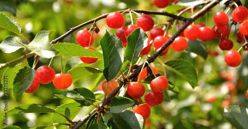 © Vladyslav Siaber, Obraz premium Bright red cherries on the branch
