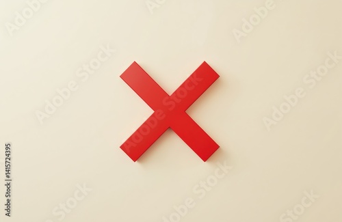 © Vadym, Obraz premium Bright red cross symbol on light background conveys clear message of prohibition. Graphic design, minimalism. Concept of error, warning, safety, attention incorrect action. Suitable for UI, web