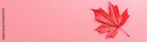 Obraz premium Bright Red Maple Leaf on Pink Background