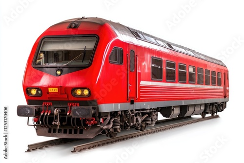 Naklejka premium Bright Red Passenger Train on Tracks Ideal for Urban Travel, Public...