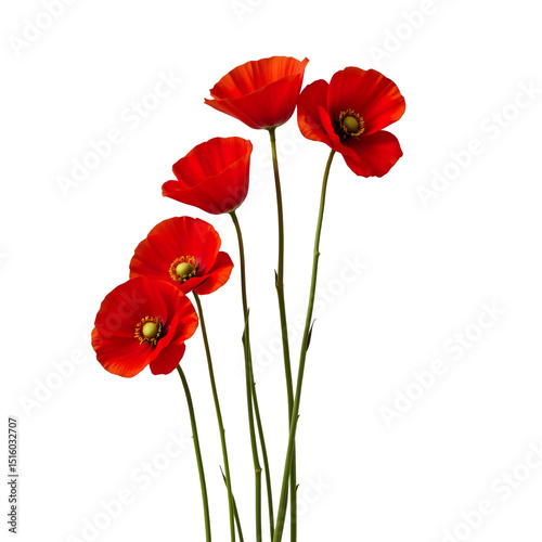 Fototapeta premium Bright Red Poppy Flowers Isolated on a White Background for Floral Art and Design Projects