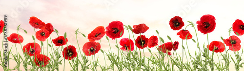 © New Africa, Fototapeta premium Bright red poppy flowers under beautiful sky, banner design
