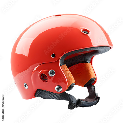 © Sadia, Fototapeta premium Bright red protective helmet for extreme sports and outdoor activities isolated on transparent background