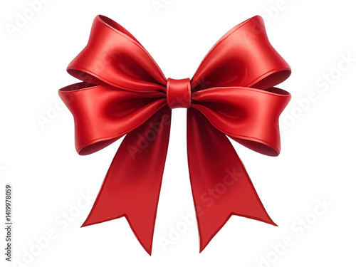 © ELmidoi-AI, Fototapeta premium Bright red satin bow, festive digital illustration. Perfect for Christmas, Valentine's Day, gift wrapping, or elegant design accents. Isolated on transparent background.