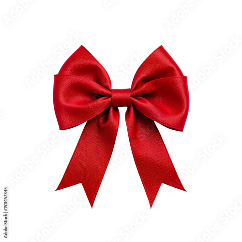 Fototapeta premium Bright Red Satin Bow with Long Ribbons for Gifts, Decorations, and Crafting...