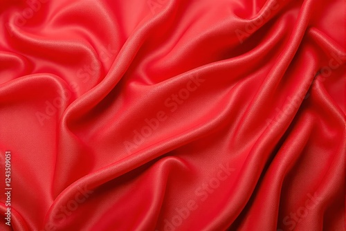 © Pixels Hunter, Obraz premium Bright red silk fabric texture with soft folds on light background.