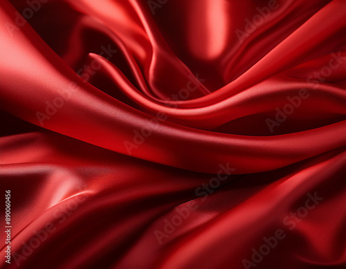 © Ranta Images, Obraz premium Bright Red Silk Texture with Rich Color and Delicate Light Reflections
