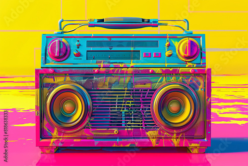 Fototapeta premium Bright, retro, urban 3D Boombox graphic.