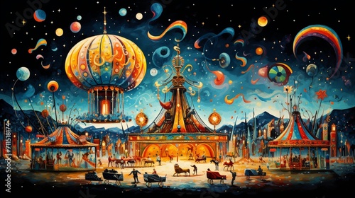 © Huzaifa, Obraz premium bright rides, lights, carousel mid-spin - Generative AI