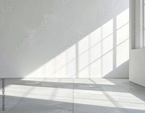 © Agyar, Obraz premium Bright room, light streams through window onto bare wall