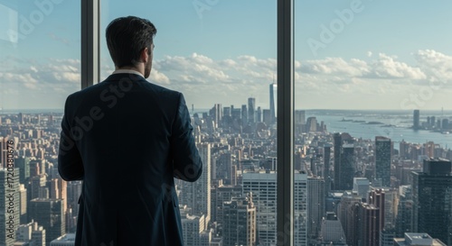 © Art, Fototapeta premium Bright room with desk chair laptop and window creates a minimalist workspace.