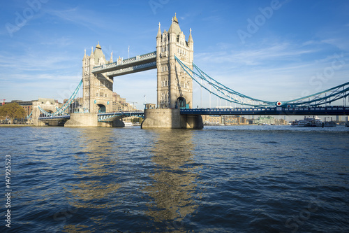 Obraz premium Bright scenic view of the landmark Tower Bridge above the River Thames in...