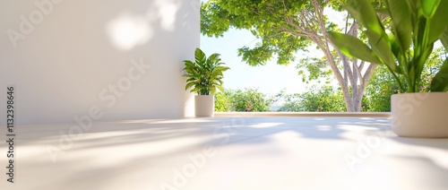 Obraz premium Bright, serene indoor space with plants and natural light.