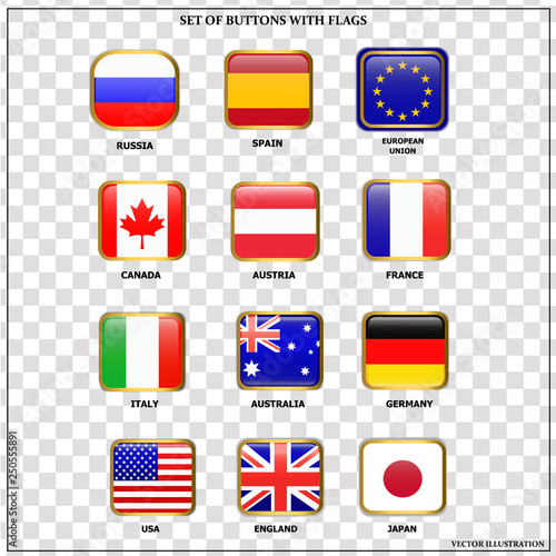 © innabelavi, Naklejka premium Bright set of banners with flags. Colorful illustration with flags of the world for web design. Vector illustration with transparent background.