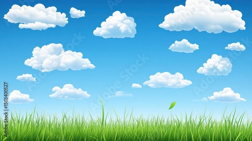 Fototapeta premium Bright sky, fluffy clouds, grassy field
