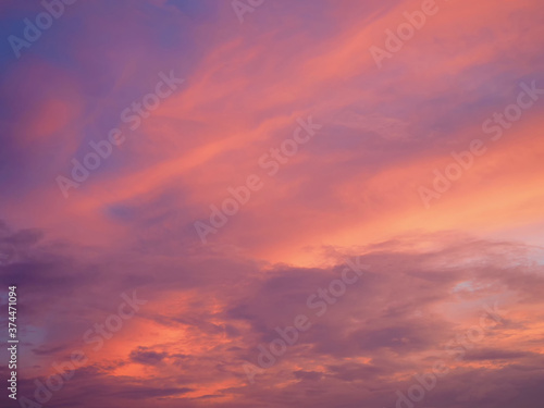 Fototapeta premium Bright sky illuminated by pink sunset light as background and texture.