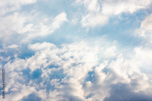 Fototapeta premium bright sky with clouds and glare from the sun's rays