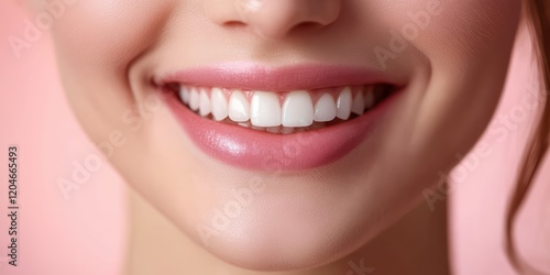 © CreativeSeven , Obraz premium Bright smile concept portrait of a woman studio setting high-quality image vibrant background close-up view