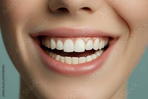 © Atlas Studio, Obraz premium Bright smile of a young person showcasing healthy teeth and joyful expression against a light background