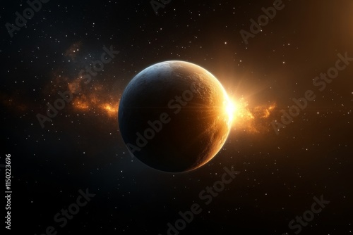 Fototapeta premium Bright solar flare illuminates a distant planet in the cosmos during a breathtaking cosmic event
