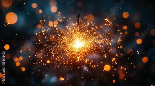 © Ahmad-Muslimin, Fototapeta premium Bright Sparkling Firework Against Dark Background