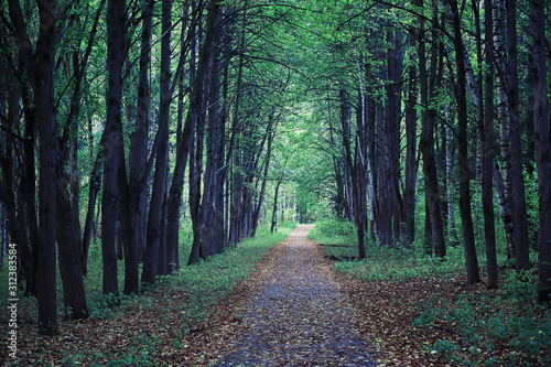 © alexkich, Fototapeta premium Bright spring greens at dawn in the forest. Nature comes to life in early spring.