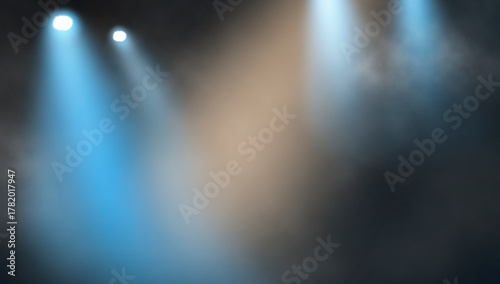 © Kalawin, Obraz premium Bright stadium arena lights and smoke