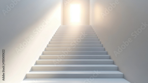 Fototapeta premium bright staircase leads to glowing light, symbolizing success and hope. clean, white design creates serene atmosphere, inviting viewers to envision their journey
