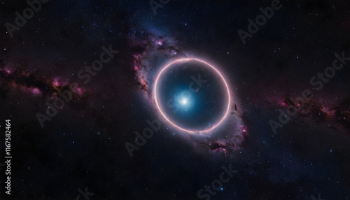 Fototapeta premium Bright star emitting energy ring forming abstract shape in deep space