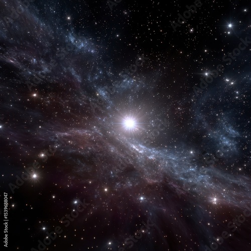 Fototapeta premium Bright Star in a Cosmic Nebula Celestial Scene of Galactic Dust and Stars