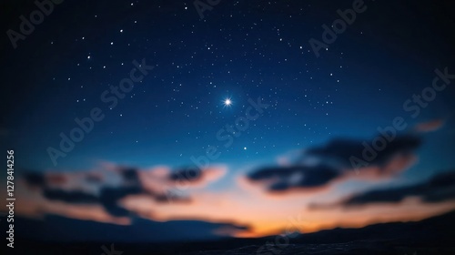 © Ghiska, Obraz premium Bright Star Night Sky Dusk Landscape Hopeful