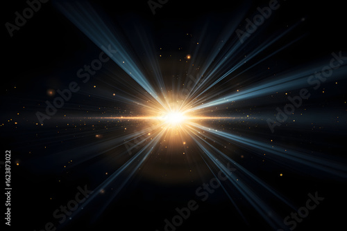 © Robin, Naklejka premium Bright starburst flare with light rays and dust particles on black background